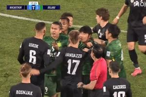 第17分钟,池忠国飞铲放倒对手,双方随后爆发冲突,冲突过后裁判未出牌。