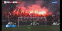 赛前水晶宫球迷也燃放烟花,拉起“欧足联黑手党”的横幅。